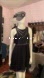 This fab little number is sleeveless with a deep V neckline and faux leather with studding around neckline and bodice… It has rushing at the sides and a sweet pleated skirt that is fully lined..