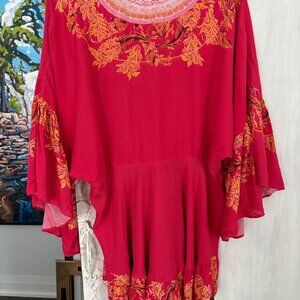 Gorgeous Hot Pink Fuschia Free People Top Butterfly Sleeves Size L