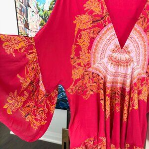 Beautiful hot pink with print top from Free People. 100% Rayon. Cool Sleeves and V neck. Worn a couple of times. In great shape! Size L
