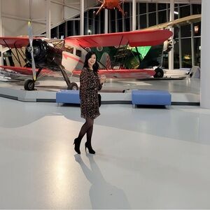 Gorgeous Melanie Lyne animal print bell sleeve dress with pockets