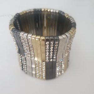 Gorgeous Mixed Metal Stretch Cuff Bracelet Rhinestones Romantic Goth whimsigoth