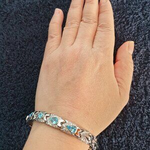 Gorgeous Silver Linked Bracelet with Blue Teardrop Crystal Rhinestones