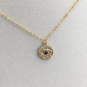Gorgeous Sparkly Evil Eye Necklace with Dark Blue & White Cubic Zirconia stones