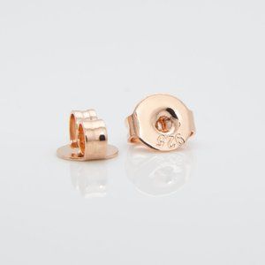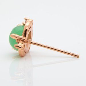 These are brand new, classy, elegant, sterling silver earrings with green chalcedony gemstones. They are rose gold plated. Surrounding the gemstone are 3 zirconias that glisten beautifully. It is brand new, stamped s925, and comes with the silver backs along with silicone backs.