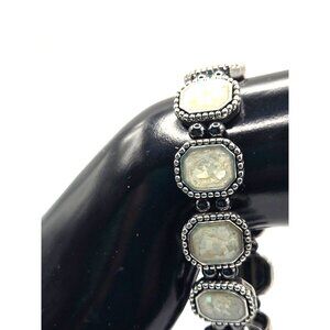 Like new this amazing glittery opalescent panel stretch bracelet is from a high end boutique. Small beads in between panels are hematite.