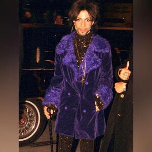 Channeling Prince and Lenny Kravitz beautiful Velvet Rock n Roll glamour. A jacket with some presence! Beautiful vintage velvet, gemstone buttons (1 is missing from front of coat and could be subbed with one on back), trimmed with blue embroidered edging. Truly a one of kind piece!