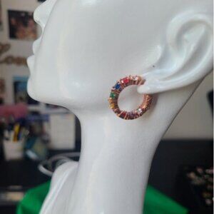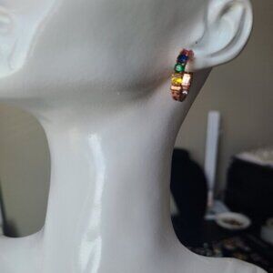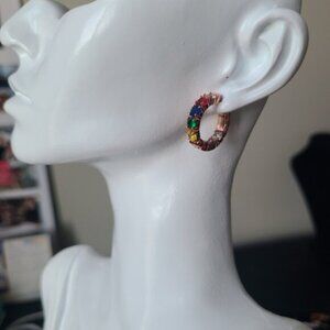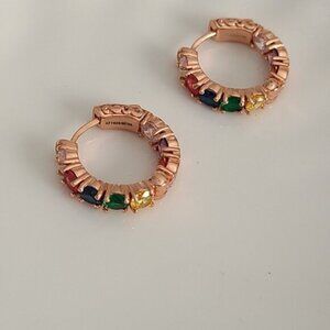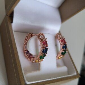 Gorgeous Vintage Rose Gold Rainbow Gemstone Crystal Hoop Earrings Multicolour