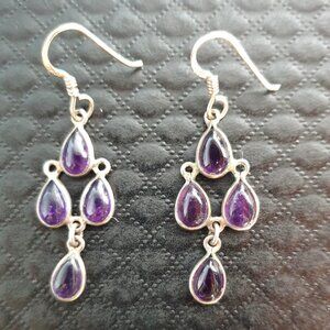 Gorgeous Vintage Victorian 8ct Natural Amethyst Cabochon Chandelier Earrings