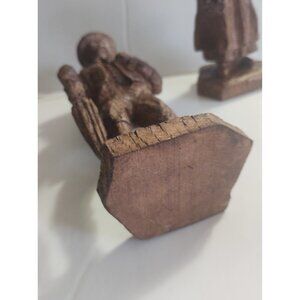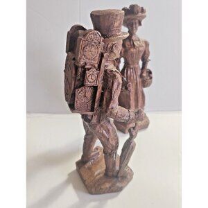 Gorgeous Vintage Wood Carvings Clock Seller & Flower Lady signed ADN