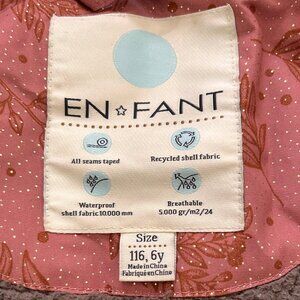 Gorgeous and unique kids' winter coat from Danish brand EN FANT. Coat is warm and practical, with removable hood, thumb holes, and waist band to block out cold air. Beautiful ruffles and little sparkles scattered throughout.