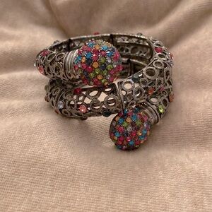 Gorgeous coiled bracelet w/ multi colored stones. Gunmetal finish.
