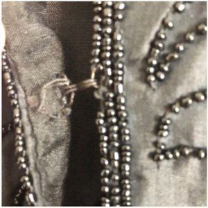 Beautiful vintage embroidered 100% silk vest. Black beading designed throughout. Excellent condition. No loose beads, only flaw is a the hook and eye clasps need to be restitched as they are coming loose. Otherwise amazing condition. It’s a crazy on trend piece that belonged to my mother and has been lovingly preserved. Selling as it has gotten too big for me now and I can’t get the wear out of it. Labeled a size medium. Best fit would be medium if planning to wear it closed, as a top.