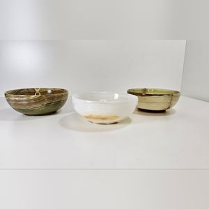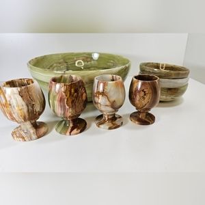 everything is in very good condition aside from the white bowl having two small chips along the rim.