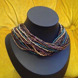 Gorgeous multi strand seed bead choker length necklace