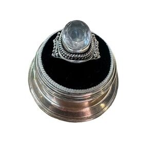 Absolutely stunning, the photos do not do this piece justice. Beautifully cut clear quartz set in sterling silver.