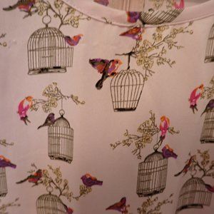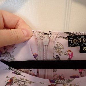 Beautiful vintage-inspired birdcage and floral print little summer romper, in a lovely shade of pastel purple. Very cottagecore, perfect for a tea party. Hesitant to part with this one as it's so, so cute, but don't see myself really wearing it anymore since I've replaced a lot of my old clothes with newer stuff over the past few years. Has adorable little button details above the sleeves, side pockets, and a chiffon ribbon tie at the front. Back zipper with a hook-and-eye closure at the top.