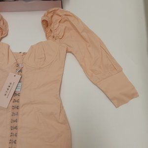 Gorgeous peach cocktail dress with bustier.