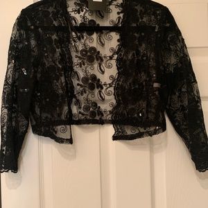 Beautiful size 8 black gown with sequins and embroidery details comes with bolero jacket also has sequins on it worn for one event