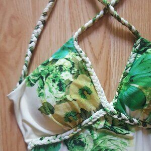 Stunning, earthy floor length maxi dress with the most beautiful greenery print! 🌿🍃 I love this one. So earthy and vibrant. Features braided straps that cross over in the back and padded cups for coverage. The material is so silky! Elastic around the back and the dress is very stretchy and super forgiving. Such a stunning looking dress! Pair with a white straw hat and sandals for the perfect resort outfit. Size medium to large, but stretchy. DM to purchase. 🌳