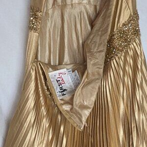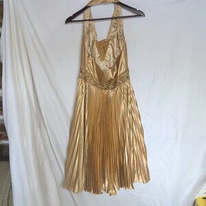 Gorgeous vintage Marilyn Monroe-style halter dress in gold with pleated skirt