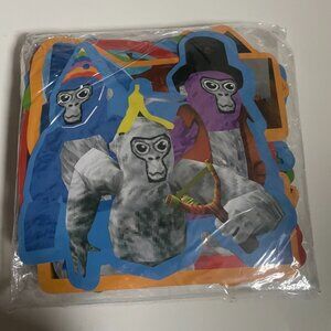 Fun gorilla-themed birthday set featuring colorful character cutouts, balloons, and party favors