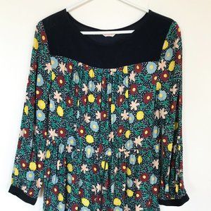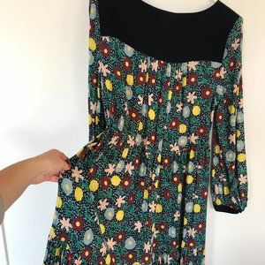 Adorable and vibrant dress from Australian brand Gorman. Cinchable waist, so you can wear it loose or cinched. A-line skirt with ruffle at the bottom. Silky navy blue cord with tassels. The main body is 70% cotton and 30% wool. The yoke and cuffs are 100% navy blue baby cord. Worn twice, in perfect condition. Length from shoulder to hem 39". Across bust is 21". Uncinched waist 21". Australian size 10, or US 6. This could fit a size 4-10 in my estimation. First pic best represents the colour.