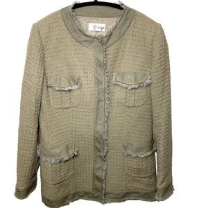 Gossip Blazer Jacket Waffle Knit Sz 48 M-L Green Tan Buttons Up Frayed Italy