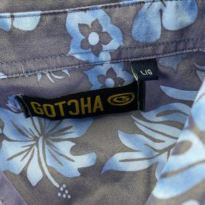 Gotcha Floral Shirt Men Large L Blue Button Down Short Sleeve Hawaiian Beach