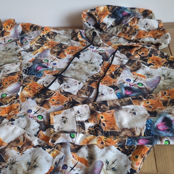 Goth Cat Hoodie – Creepy Cute Kittens + Upside Down Crosses, Alt Streetwear Pull