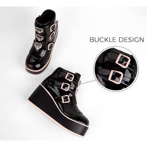 🆕 Goth Platform Chunky Ankle Boots Black Pink PU Wedge Zip Buckle Rave Booties