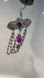 This goth style brooch features a delicate filigree design in silver tone , centered around a striking oval purple gemstone. Cascading strands of pink beads create a fringe effect, ending with a larger teardrop-shaped purple crystal. The harmonious blend of purple and pink hues adds a touch of sophistication to any ensemble.