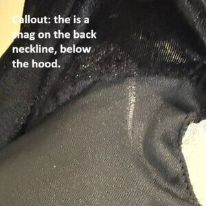 Elegant black gothic enchantress gown dress with silver lace-up detail and ribbon. Perfect for special Halloween, dress up, cosplay. The top and sleeves are crushed velvet, and gown is satiny. The bodice behind the lace up is a metallic glittery silver material. There is a bustle below the skirt which gives the dress more fullness.