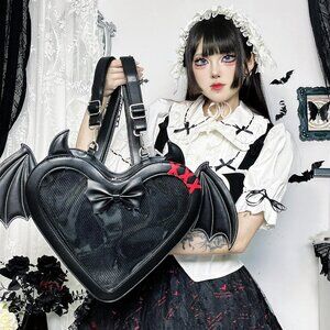 Gothic Heart Shaped Ita Bag with Bat Wings Backpack and Crossbody Purse