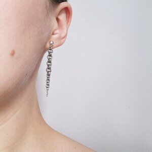 Gothic Medieval chainmail style long dangly spike silver earrings