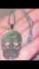 Stylish silver skull pendant on a chain. Intricate design for a bold look.
