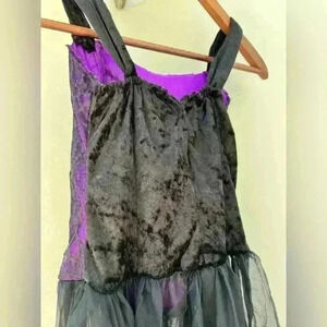 Great for Halloween, cosplay, or a gothic party look! Features black and purple mesh layers with cute pink bows and a velcro back closure. Flowy and lightweight for a dramatic, witchy vibe.