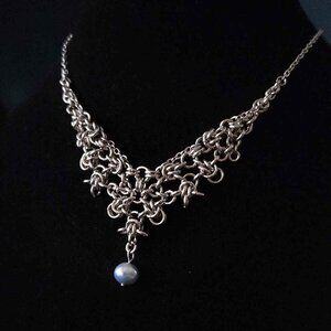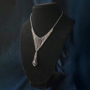 Gothic black diamond-shaped rosary necklace with a small silver chain
