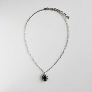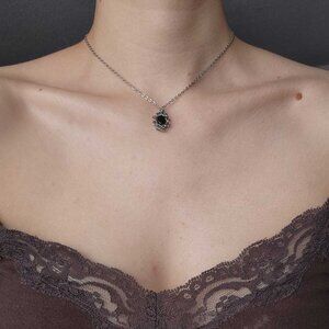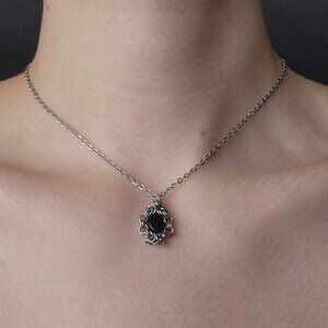 Gothic black onyx chainmail dainty pendant necklace with a small silver chain