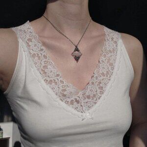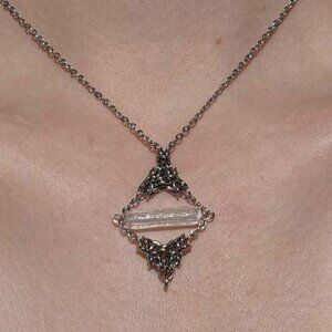 Gothic fairy crystal diamond-shape necklace with a small silver chain