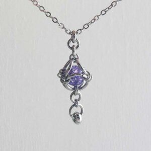 Gothic fairy purple caged pearl necklace with a small silver chain