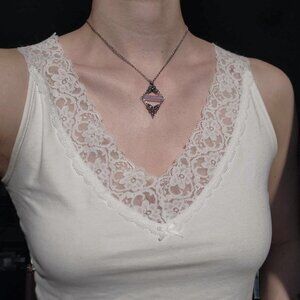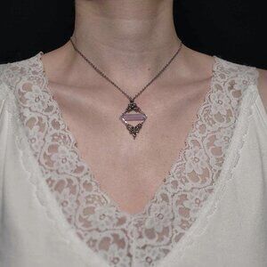 Gothic fairy purple diamond-shape necklace with a small silver chain