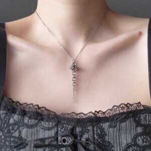 Gothic long spiky dagger chainmaille necklace with a small silver chain