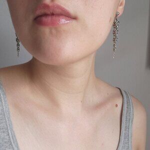 Gothic medieval chain mail pointy long silver earrings ✦ stainless steel ✦
