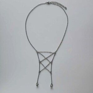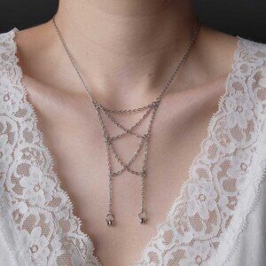 Gothic silver lace-up long chainmail necklace with a small silver chain
