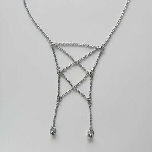 Gothic silver lace-up long chainmail necklace with a small silver chain