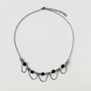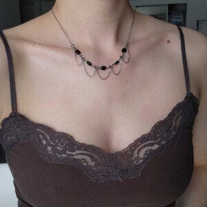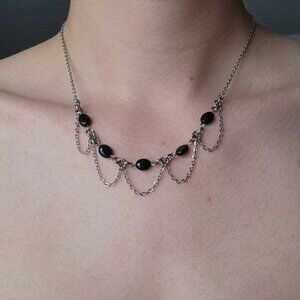Gothic victorian black onyx chandelier necklace with small silver chain