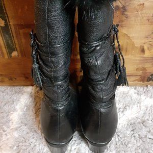 Gotti Leather Wedge Fur Trim Lace Up Tassel Boots 8.5
