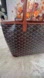 Elegant Goyard piece with iconic pattern. Features tan leather details. Guaranteed authentic. Like new. Size pm