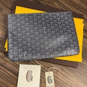 Goyard Monogram Logo Grey Senat MM Pouch Clutch