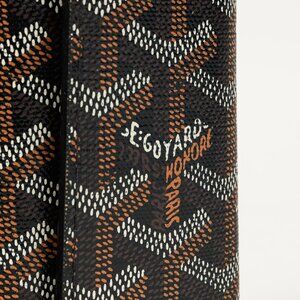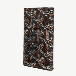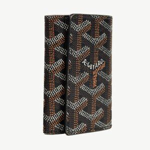 The Saint-Michel key ring from Goyard is crafted in a Black Goyardine coated canvas, and features a trifold design, a snap fastener, a tonal Vauzelles calfskin leather interior, and 6 silver-tone metal hooks.